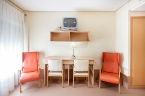Sus 136 plazas están distribuidas en 68 habitaciones, todas ellas exteriores en una superficie construida de 4.000m.2 disponiendo de más de 7.500 m2 de zona ajardinada.