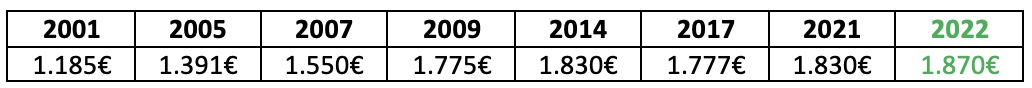| Iles Balears | 1.969 | 1.920,00 € |