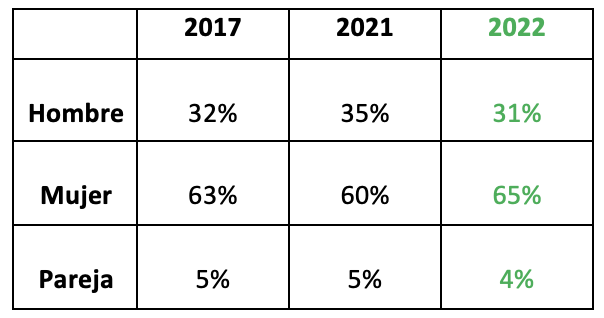 La persona mayor que precisa el servicio o para quien se busca residencia (y lo busca a través de Inforesidencias.com) tiene el siguiente perfil que mostramos y que comparamos con el año 2017 y 2021 para ver la evolución en los últimos años: